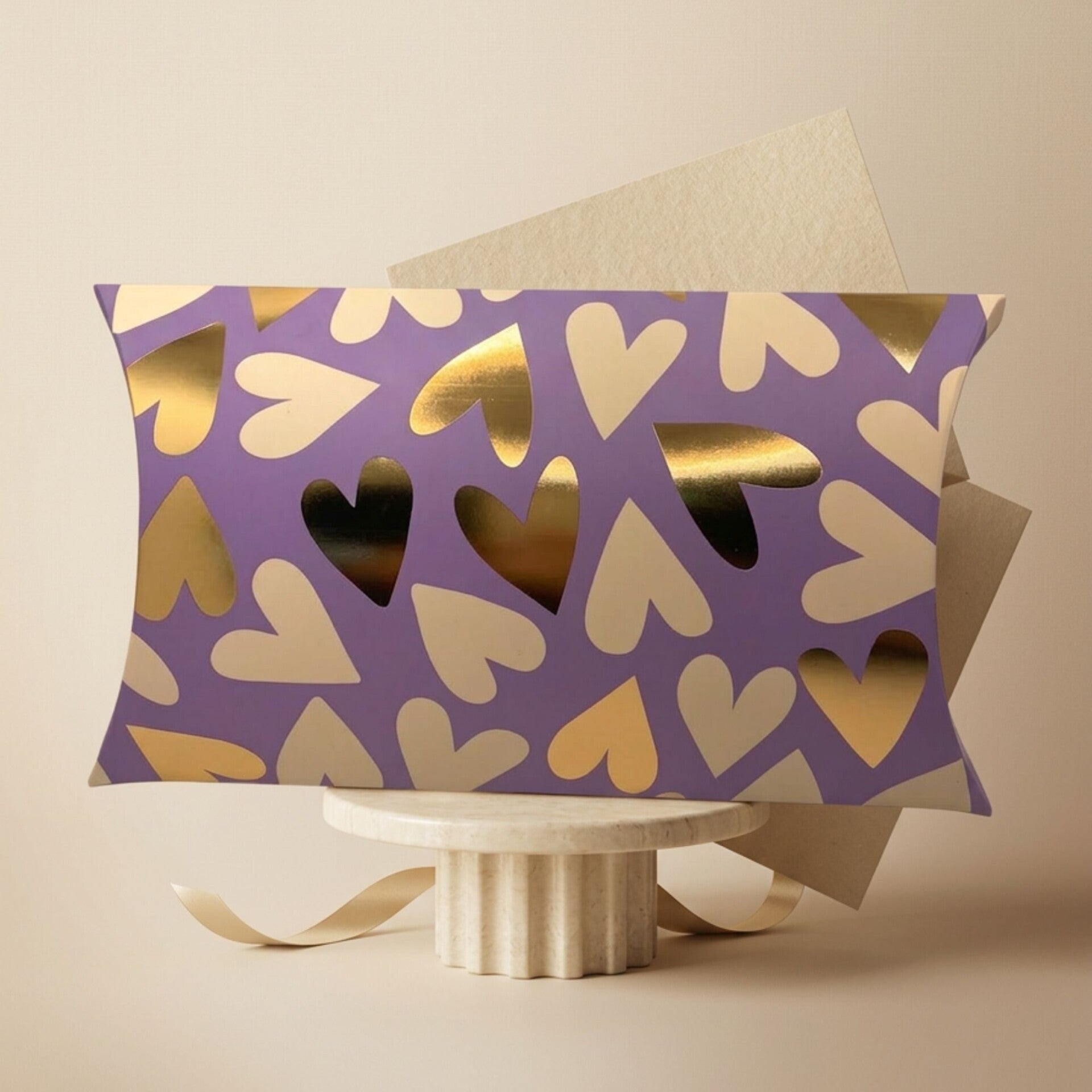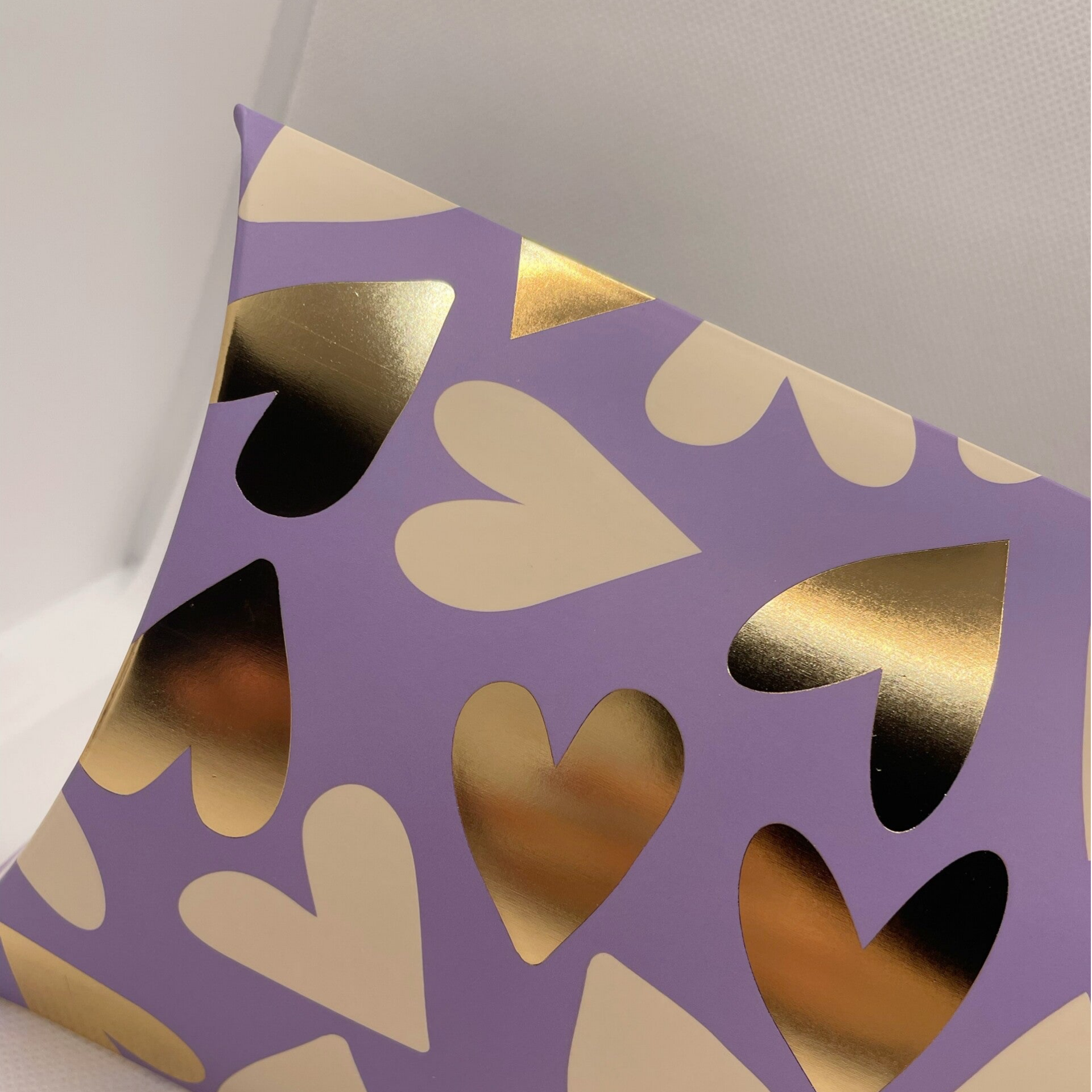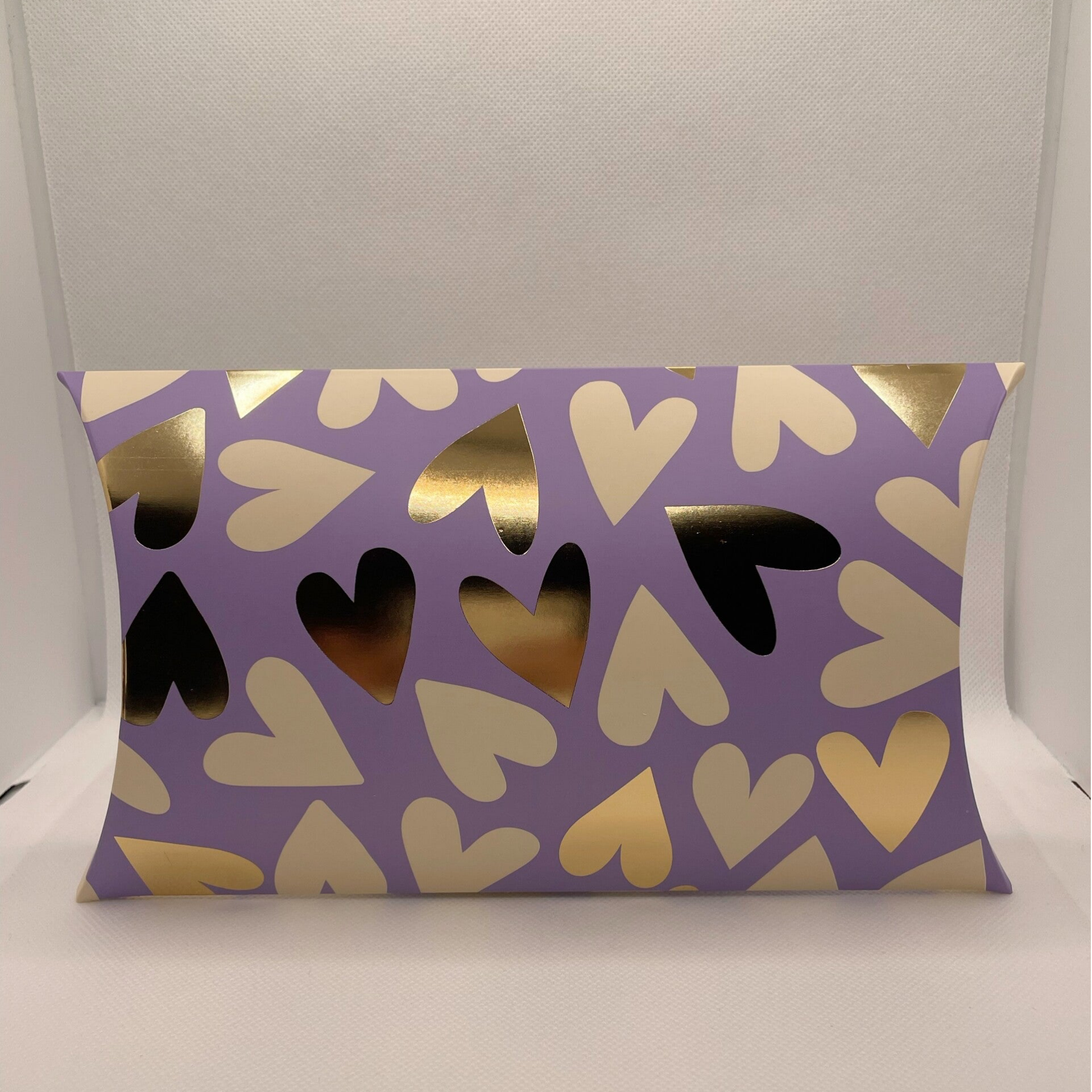 Kissenschachtel Herzen in Lila & Gold – elegante Geschenkverpackung mit Liebe zum Detail