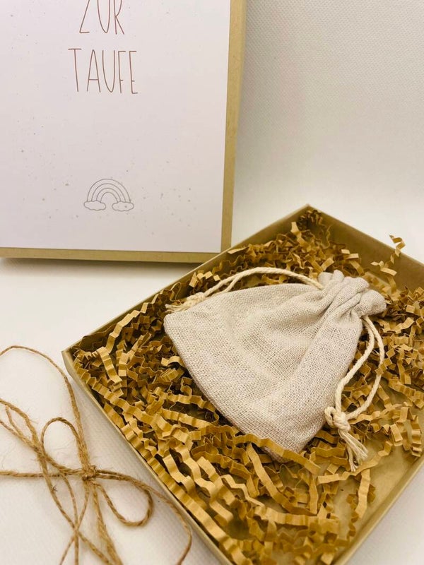 Die Box ist stabil, schlicht und vielseitig kombinierbar – ob zu Geburtstagen, Hochzeiten, Weihnachten oder einfach als hübsche Verpackung für eine kleine Überraschung. Durch das beigelegte Baumwollsäckchen bekommt dein Geschenk eine natürliche und nachhaltige Note.