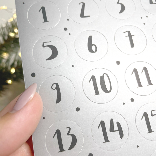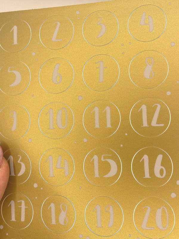 Die runden Zahlenaufkleber mit 2 cm Durchmesser sind perfekt geeignet, um kleine Tüten, Schachteln oder Geschenke zu nummerieren und deinen DIY-Adventskalender liebevoll zu gestalten.